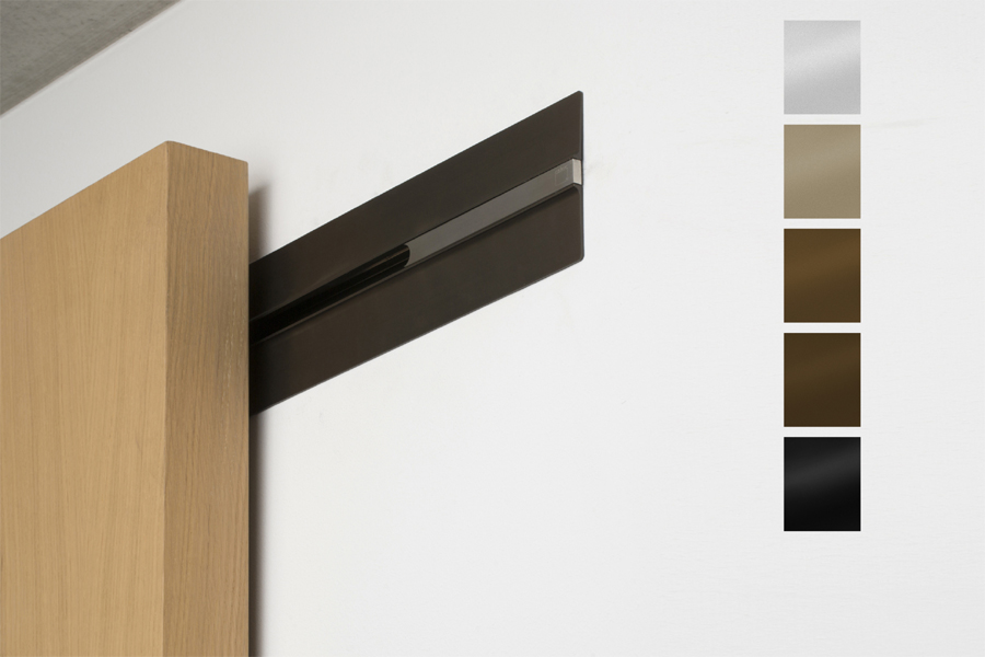 Alle Sichtteile in Aluminium sind in den Varianten „Farblos“, „Leichtbronze“, „Mittelbronze“, „Dunkelbronze“ und „Schwarz“ eloxiert erhältlich. Hierbei dringt die Eloxalschicht einige Mikrometer in die Oberfläche des Beschlages ein und bildet eine starke molekulare Verbindung. So entsteht eine harte, verschleissfeste Schicht, die das darunterliegende Aluminium schützt. Die Korrosionsbeständigkeit wird erhöht und der Beschlag bleibt auf Dauer ansehnlich.