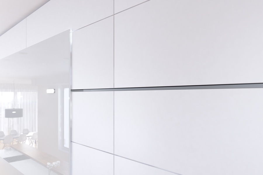 Mit dem Schiebetürbeschlag inline il.10 bringt die astec GmbH ein Türelement auf den Markt, bei dem ein Grossteil des Beschlags in die Wand integriert ist (37,5mm tief, 94mm hoch), wodurch lediglich zwei 4,5cm breite Blenden und eine 1,5cm breite Nut zu sehen sind. Diese bestehen aus Aluminium und Edelstahl. Die Nut kann auf Wunsch farbig hinterlegt werden, wodurch sich das Element in die jeweilige Gestaltung des Raumes einfügt. Der Schiebetürbeschlag ist mit einem Dämpfmechanismus ausgestattet, der die Tür aus der Bewegung stoppt und nahezu lautlos in die Endposition zieht. Er eignet sich für Holz- und Glastüren gleichermassen, wobei er einem Gewicht von 200kg standhält, d.h. auch bei grossen Türen verwendet werden kann. Denkbare Einsatzgebiete sind beispielsweise Wohn-, Büro- und Besprechungsäume sowie Arztpraxen und Hotels.
