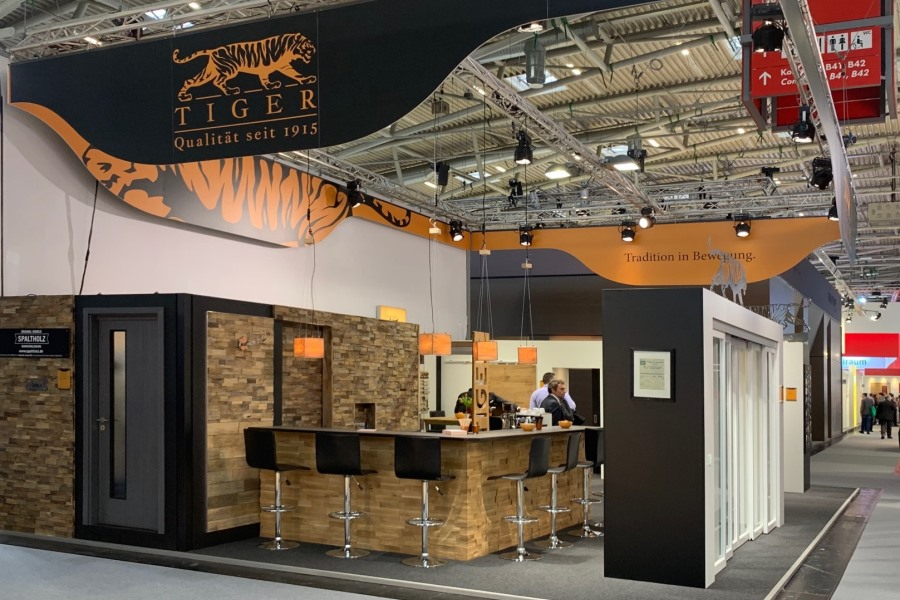 TIGER begrüsste die Gäste mit einer 4-flügeligen Abtrennung mit Automatikantrieb, eine Bekräftigung der Leistungsfähigkeit des ET3. Je 2 verglaste Flügel wurden mit Differenzial- und Synchronantrieb über 1 Motor praktisch lautlos bewegt. Als rein mechanische Automatikschliessung sorgt der neue, in der Laufschiene integrierte T-Close dafür, dass sich die Schiebetüre nach dem Durchschreiten selbständig wieder schliesst. Durch den regulierbaren Haltestopper kann die Türe selbstverständlich auch permanent offengehalten werden.