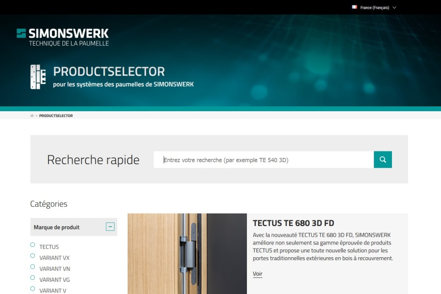 La restructuration du site d’internet www.simonswerk.de a été mise en service début 2017 et pouvait donner preuve de son aptitude pendant l’année passée. Au cours de ce temps plusieurs sites web supplémentaires ont été construits et en décembre le site français pouvait aller en service. En collaboration avec les responsables régionaux en France, la Suisse et la Belgique le nouveau site a été construit et nous sommes très heureux de pouvoir adresser nos amis de la Suisse Romande en leur langue maternelle. Le site français, avec le sélecteur de produits populaire, est accessible par www.simonswerk.fr .