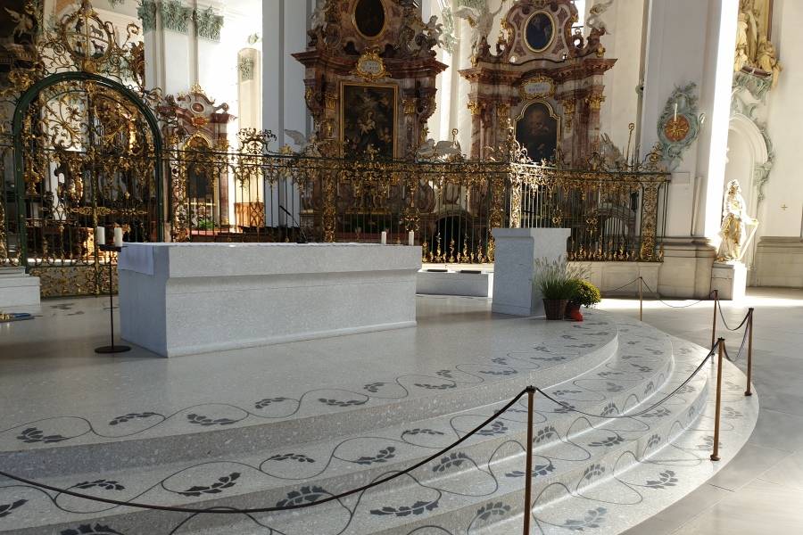 Innenbesichtigung der Stiftskirche; neu gestalteter Altarbereich
