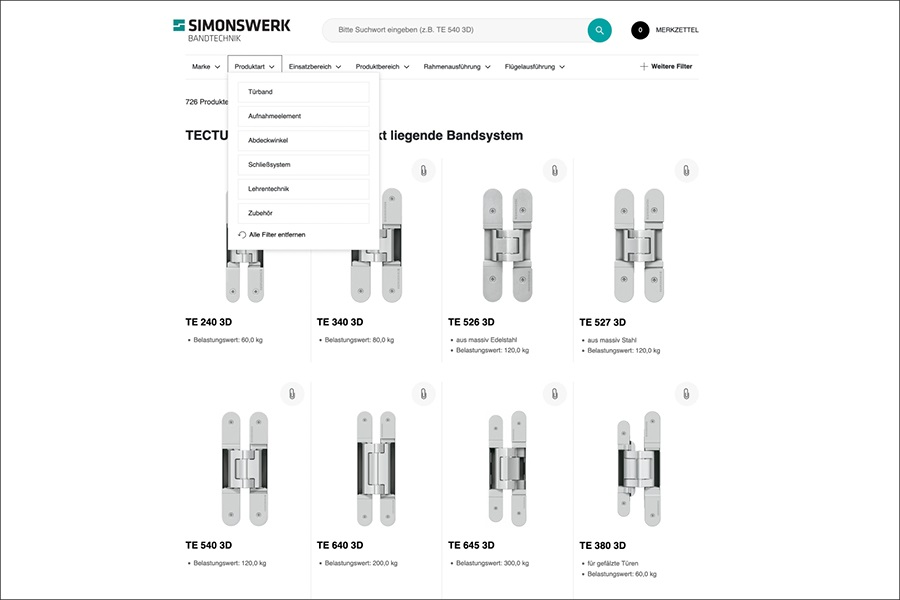 SIMONSWERK designt und gestaltet Produktselektor neu