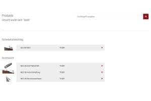Nebst den etablierten und regelmässig genutzten Funktionen des Link Beschlagplaners bietet Ihnen der Webauftritt von Link Beschlagtechnik neu auch die Möglichkeit, über www.beschlagtechnik.ch > Produkte & Konzepte > Produkte eine komplette Auflistung der einzelnen Produkte unseres Produkteportfolios in einer Gesamtschau aufzurufen. Innerhalb der Produktsuche finden Sie zudem über die entsprechenden Stichworte schnell das gesuchte Produkt, zusätzlich werden dort die dazu passenden und ergänzenden Produkte aufgezeigt. Beispielsweise wird Ihnen über den Begriff HAFI245 nicht nur die exakt passende Drückergarnitur angezeigt, sondern die ganze Modellfamilie mit den dazugehörigen Fluchttür- Rohrrahmen- und Fenstergriffen. Oder suchen Sie eine Übersicht zu den Anwendungen des Schiebetürbeschlages TIGER ALU 100? Mit dem Begriff ALU100 werden Sie sofort fündig.