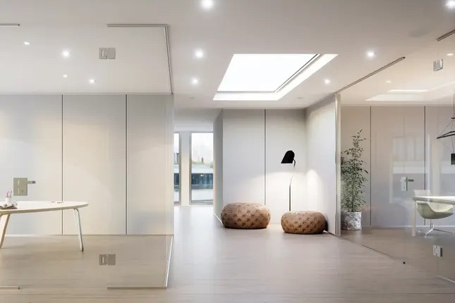 BILOBA ist in zahlreichen hochwertigen Oberflächen wie Mattgold oder Schwarz erhältlich – ideal für den Einsatz in Büros, Showrooms, Museen oder der gehobenen Gastronomie. Die Bänder verhindern das Durchpendeln in der Nulllage und ermöglichen optional eine Kombination mit Türstossgriffen oder einem geräuscharmen Fallenschloss.