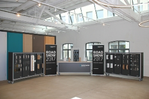 Zwischen dem 15. Mai und 16. Juni dürfen wir für unseren Top-Partner SIMONSWERK die Roadshow 2017 durchführen. Mit einem eigens dafür ausgerüsteten Fahrzeug werden wir in dieser Zeit unsere Zielgruppen Verarbeiter und Partnerhändler in der ganzen Schweiz besuchen. Das Fahrzeug hat 2 grosse Präsentationswände, bestückt mit dem kompletten SIMONSWERK-Sortiment, welche aus dem Fahrzeug gefahren werden können. Der ebenfalls mobile Korpus beinhaltet funktionelle Musteranschläge, um die Verstellmöglichkeiten und die Bandoptik im montierten Zustand zu erleben. Die Präsentation kann bei guter Witterung auf einem Vorplatz des Betriebes stattfinden, oder bei ungünstigen meteorologischen Verhältnissen in der Produktionshalle, wo sich die Mitarbeiter über die neuesten Errungenschaften von SIMONSWERK informieren, oder einfach bekanntes Wissen vertiefen können.
