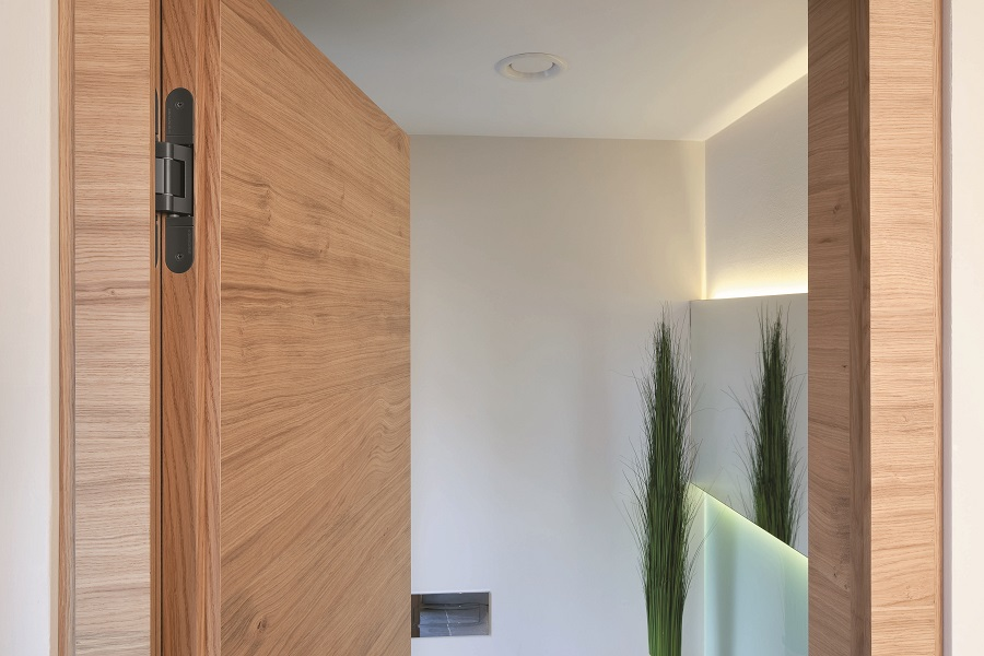 Besonders die flächenbündigen Bänder der Marke TECTUS unterstreichen dabei häufig die Intention reduzierter Innenräume, während die VARIANT-Rollenbänder gerne für exquisite Akzente eingesetzt werden. Somit dienen schwarz-matte Türbändern als ausdrucksstarke Details im Interior-Bereich, die mit ihrem eleganten, zeitlosen und ästhetischen Design jedes Gestaltungskonzept stilvoll und harmonisch abrunden.