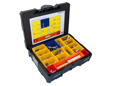 - Nach- und Umrüstutensilien übersichtlich in einzelnen Boxen