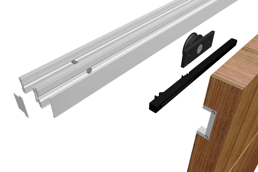 Eleganz pur: eine Schiebetür, die sich lautlos und „schwebend“ an der Wand entlang bewegt. Gehalten wird sie durch eine filigrane, geschliffene Laufschiene, deren ebenmässige Oberfläche nicht durch Bohrungen für Befestigungsschrauben unterbrochen ist.