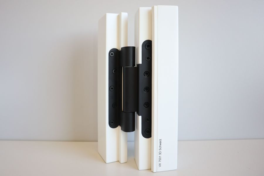 Die Nachfrage für Bandsysteme in der Oberfläche schwarz matt steigt stetig. Bisher standen die verzinkten Schraubenköpfe der Aufnahmeelemente in Kombination mit schwarzen Abdeckwinkeln deutlich hervor. Die Aufnahmeelemente SIMONSWERK VX 7501 3D und VX 7502 3D sind daher neu auch mit schwarz verzinkten Klemmschrauben und Seitenverstellspindeln (Farbcode SW 012) lieferbar. Dank dieser Ergänzung des Sortimentes kann neu sowohl die Flügel- wie auch die Rahmenseite homogen in der Trendfarbe schwarz matt umgesetzt werden.