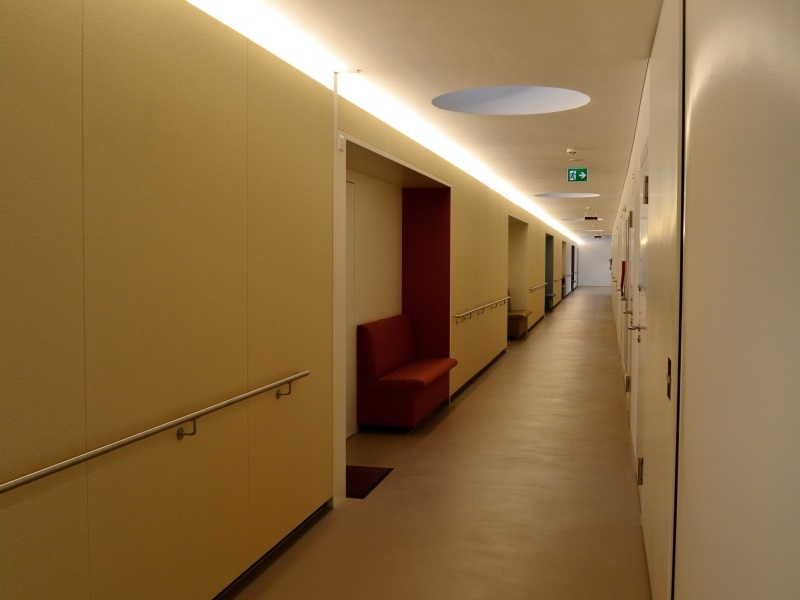 Für einen störungsfreien Betrieb wurden die Türen mit dem verlässlichen VX-Bandsystem von SIMONSWERK ausgestattet. Das VX 7729/160 mit Oberfläche Edelstahl gebürstet sorgt zusammen mit dem Aufnahmeelement VX 7501 3D und dem passenden Abdeckwinkel VX 7560 KK für eine gleichmässig umlaufende Falzluft der flächenbündig einschlagenden Türen. Angenehme Ruhe in den Bewohnerzimmern garantieren die Absenkdichtungen CardaTec® D1. Für die Bedarfsflügel hat sich der Türbauer für den flexiblen Einbau des CardaTec® Treibriegeladapters entschieden – eine kluge Wahl, gleichermassen für den Türlieferanten wie auch für die zufriedenen „Mätteli“-Bewohner.