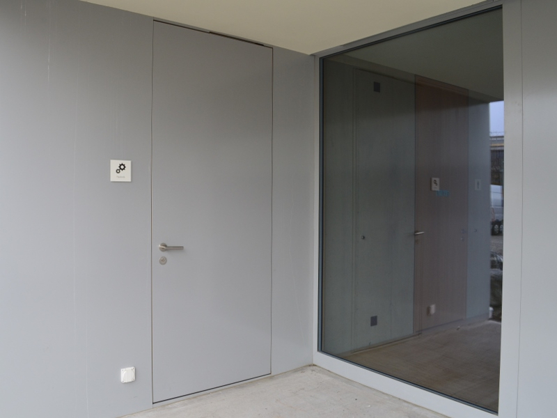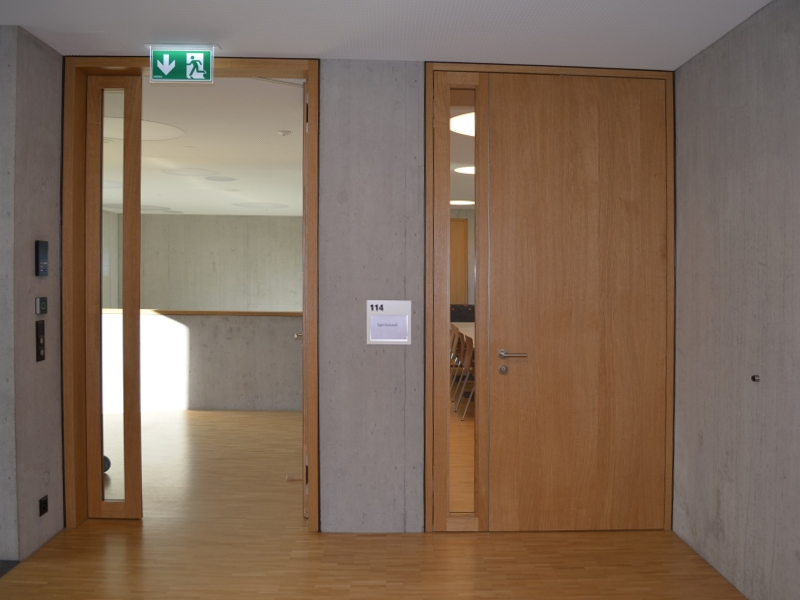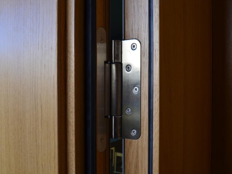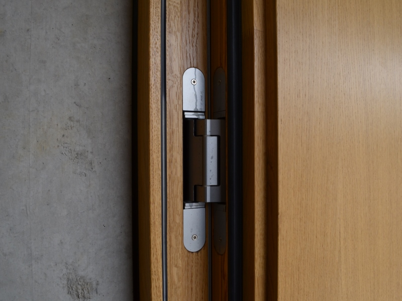 Die Türen sind mit Bandsystemen aus dem Hause SIMONSWERK und Absenkdichtungen von CardaTec  ausgestattet. Ausschlaggebend für das TECTUS-Programm von SIMONSWERK waren die vielfältigen Möglichkeiten bezüglich den Belastungsnennwerten und Türgeometrien. Für die Aussentüre zum Innenhof wurde zudem das VN 2927/160 Compact mit 3D-Verstellung und stringenter Rollenoptik gewählt.