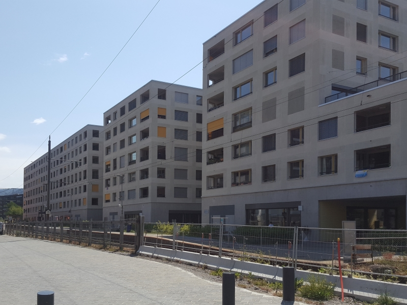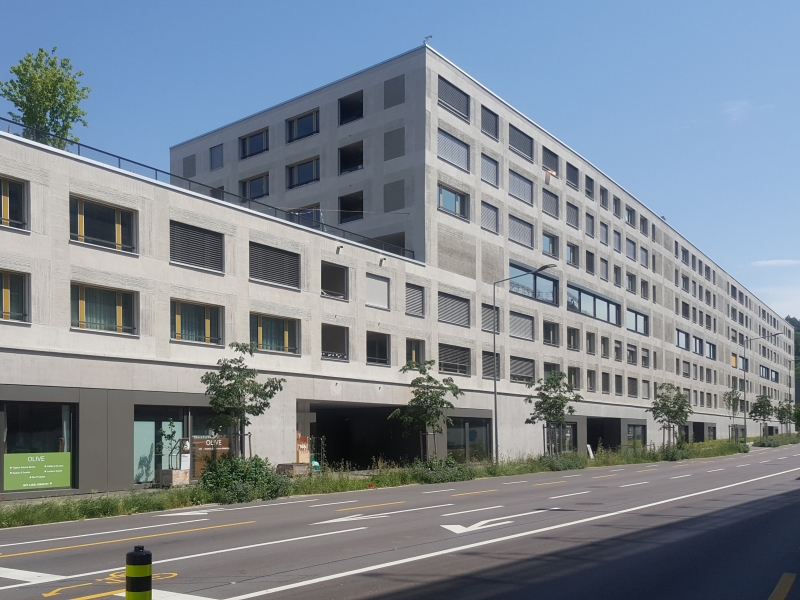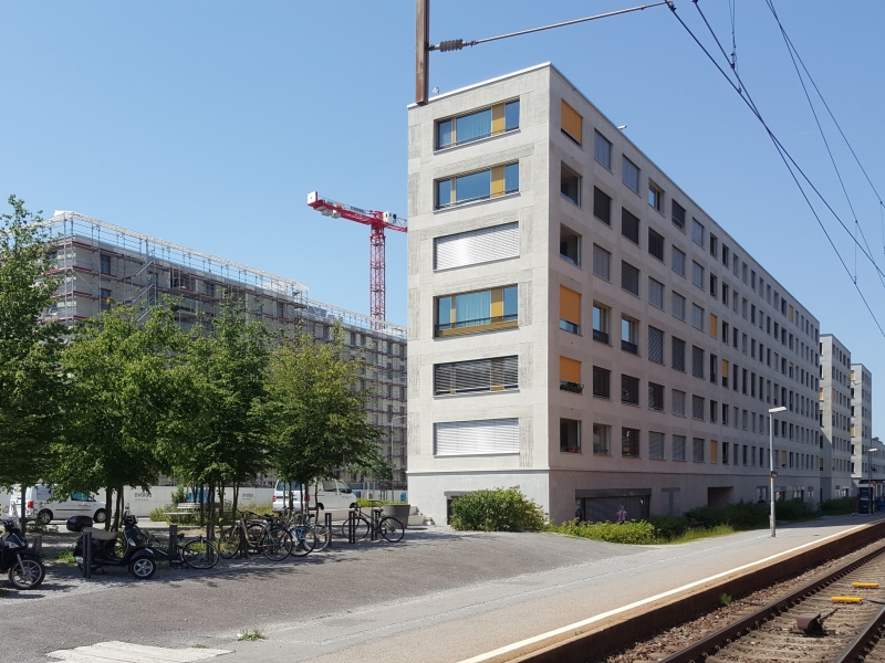 Bei unserem Besuch beim General-Unternehmer Losinger-Marazzi wurde uns rasch klar, dass der Weg bis zur Auslieferung unserer Produkte ein beschwerlicher sein wird. Anfragen zu unseren Produkten in ganz Europa unterstrichen dies dann auch. Schliesslich gelang es aber diesen interessanten Bau, wo im Erdgeschoss Gewerbe einzog, während in den oberen Etagen Wohnungen in unmittelbarer Nähe der Grünzone Allmend entstanden, mit den Produkten von HAFI auszurüsten.
