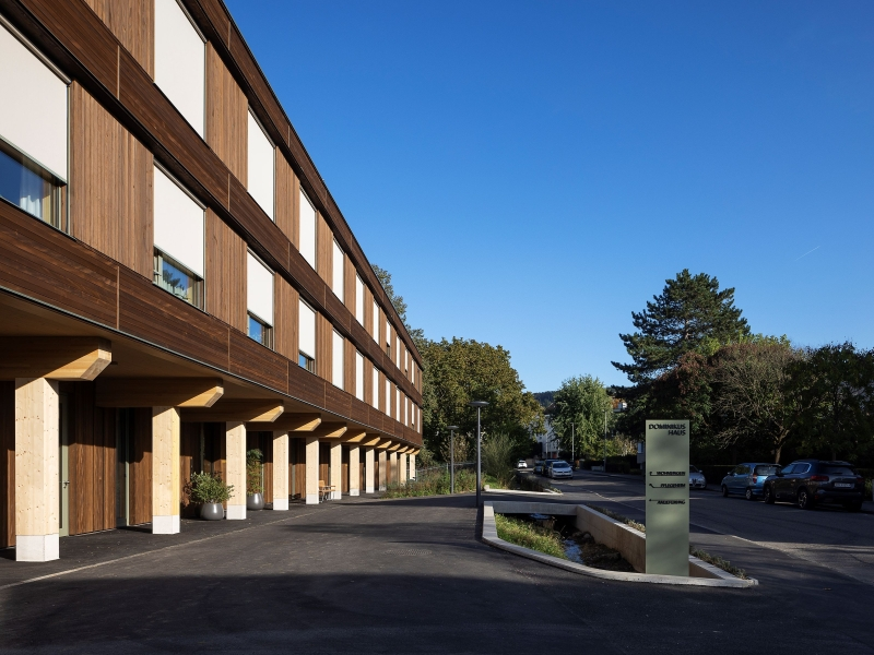 Der Neubau des Dominikushauses, fertiggestellt 2023, wurde nach einem Architekturwettbewerb von Müller & Nägelin Architekten BSA auf dem Areal Immenbachstrasse realisiert. Das markanteste Merkmal des Hauses ist seine Nachhaltigkeit: Abgesehen vom Untergeschoss sowie den Treppen- und Liftkernen besteht das gesamte Gebäude aus Holz. Diese umweltfreundliche Bauweise fördert eine friedvolle, heimelige Atmosphäre, die an das „alte“ Dominikushaus anknüpft. Das Projekt vereint ökologische Standards mit dem Wunsch, den „guten Geist“ des ursprünglichen Hauses zu bewahren.