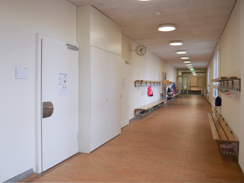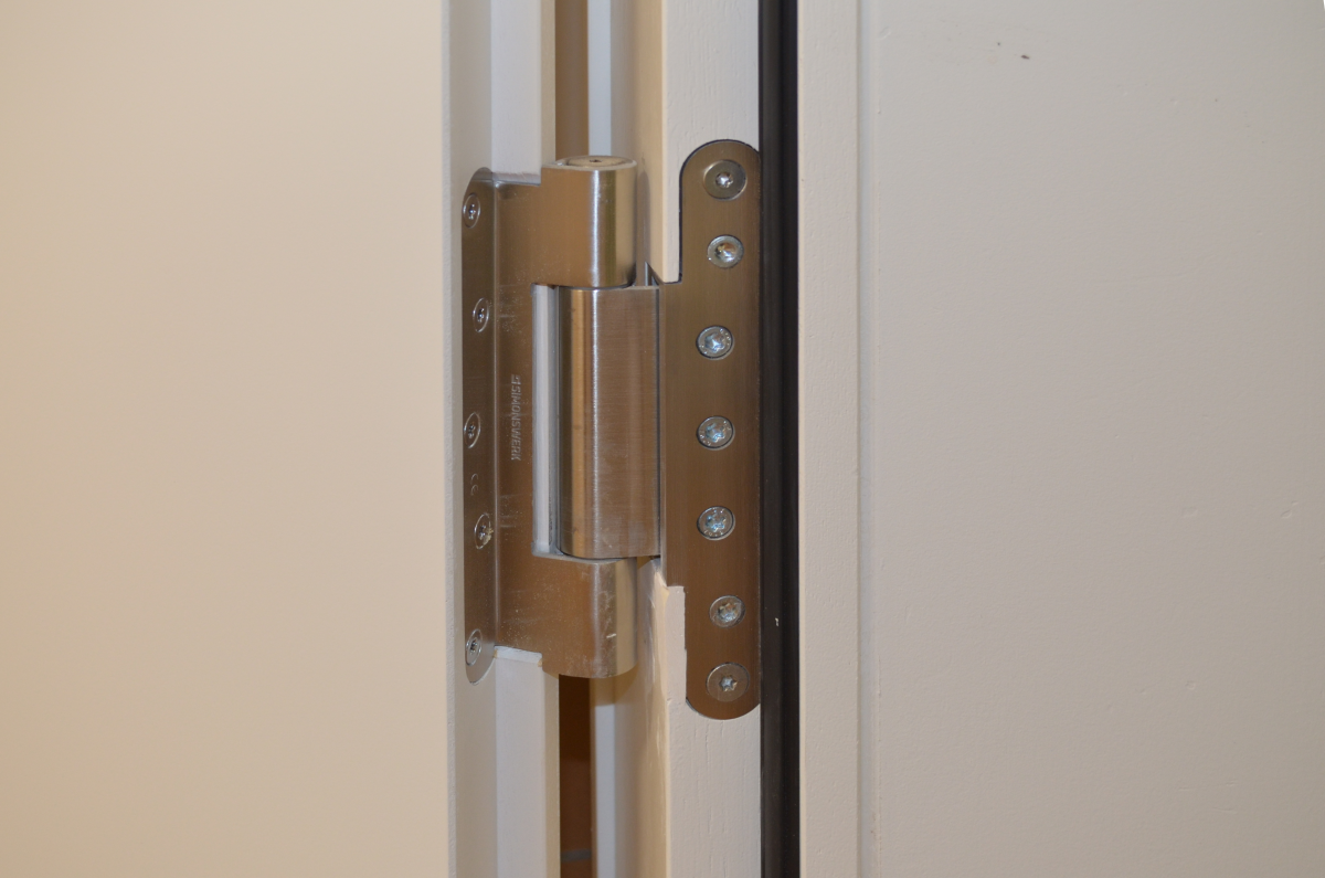 Die gefälzten Klassenzimmertüren wurden mit Objektbändern SIMONSWERK VX 7938/160 in Oberfläche Edelstahl matt gebürstet ausgestattet. Als Aufnahmeelement dient das bewährte VX 7501 3D mit einem Verstellbereich von +/-3mm in allen drei Dimensionen. Für die optische Angleichung der Oberfläche hat man sich für den Abdeckwinkel VX 7560 KK entschieden.