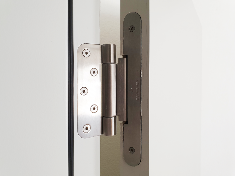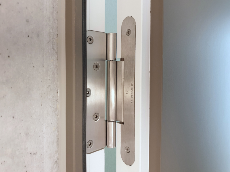 Für den Einbau der Türen entschieden sich die Planer für Bandsysteme aus dem Hause SIMONSWERK. In den Wohnräumen kommen verdeckt liegende Bänder der TECTUS-Familie und das beliebte 3D-Bandsystem VARIANT V 7888 des deutschen Herstellers zum Einsatz. Die Wohnungseingangstüren, Keller- und allgemeine Türen wurden mit dem Compact Planum ausgestattet, besonders gelungen sind die rahmenlosen Details mit dem VN 2927/120 Compact.